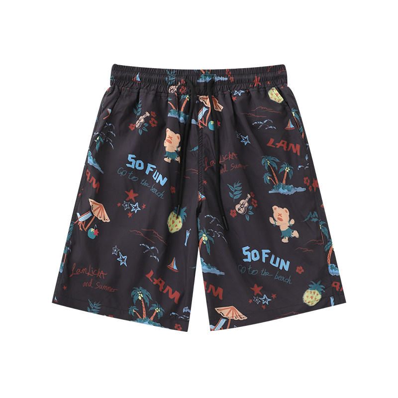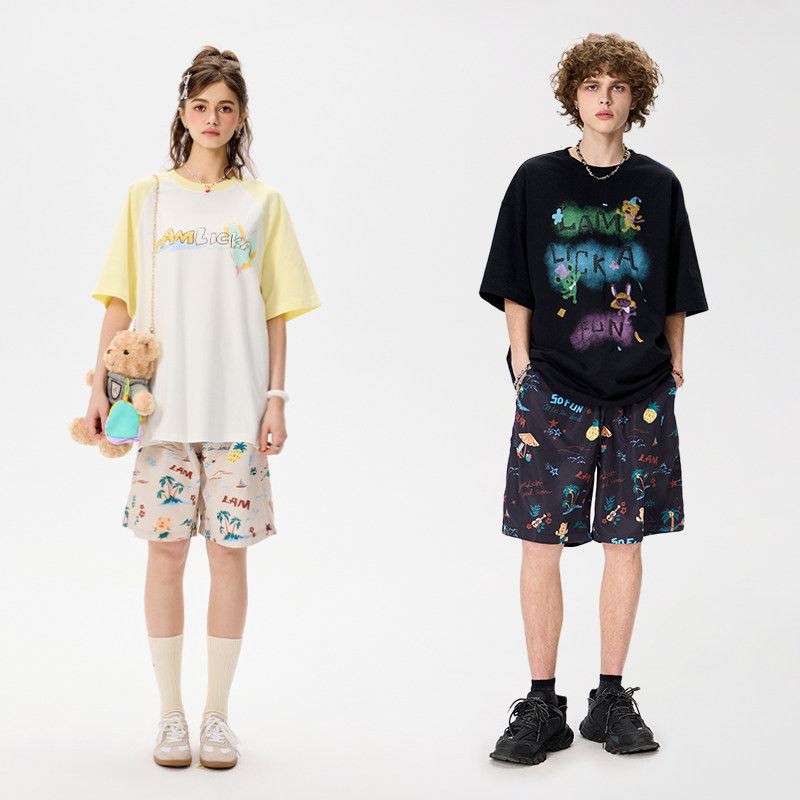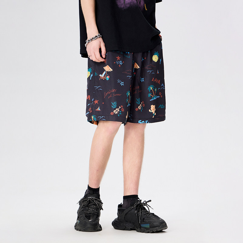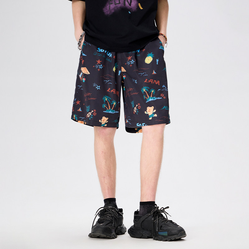 LAMLICKA满印凉感沙滩裤休闲五分裤宽松慵懒风夏季薄款短裤男款