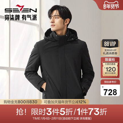【拒水羽绒】柒牌可卸连帽羽绒服男士冬季新品通勤保暖防寒厚外套