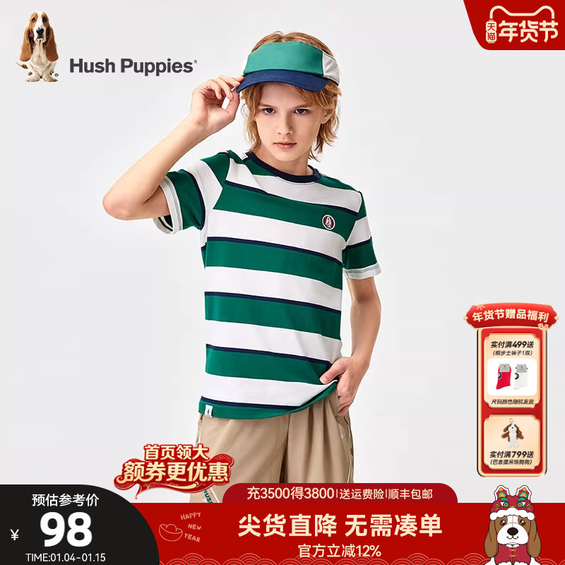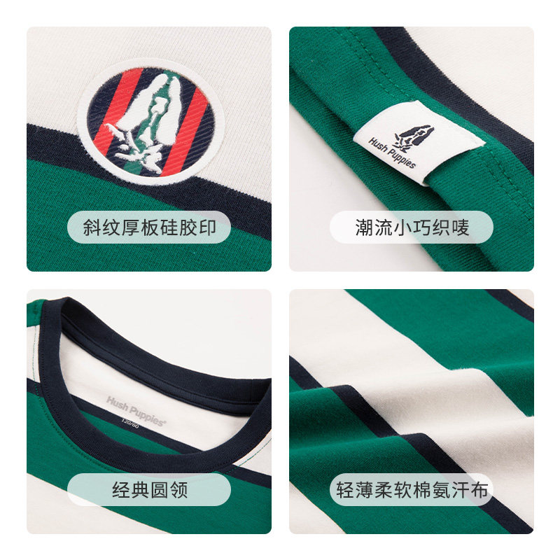 暇步士童装男童短袖t恤夏装新款大童条纹圆领上衣儿童柔软打底衫
