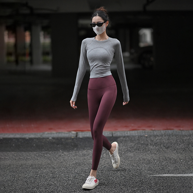 Beemen无缝针织瑜伽服女上衣2025新款速干跑步健身打底衫运动长袖