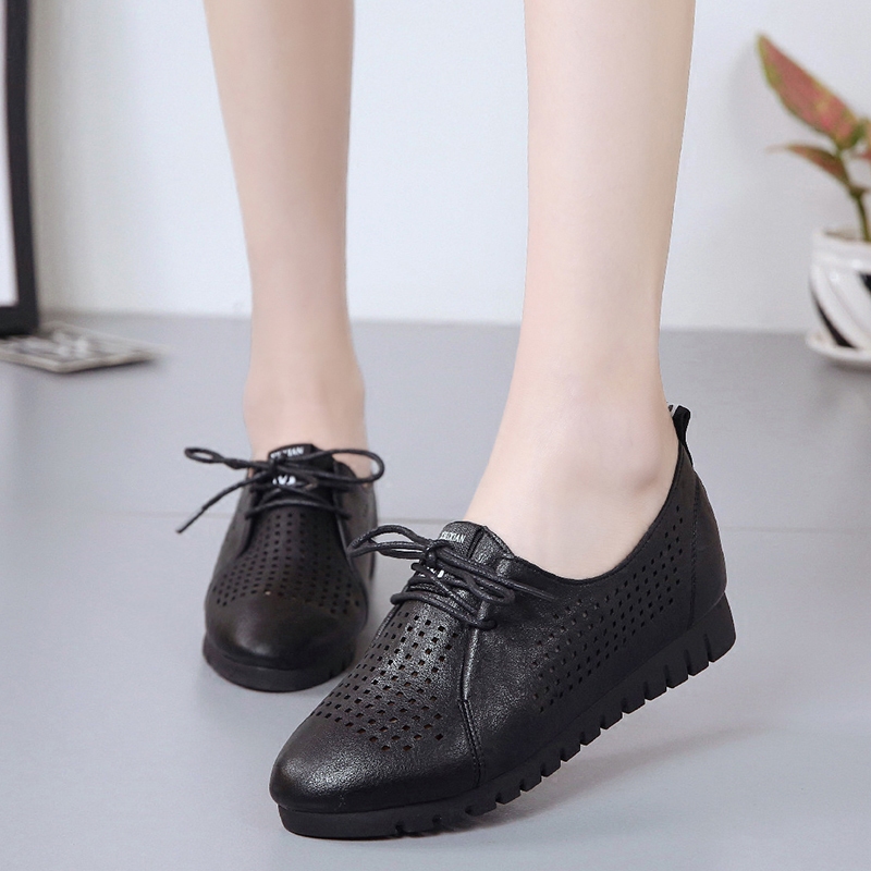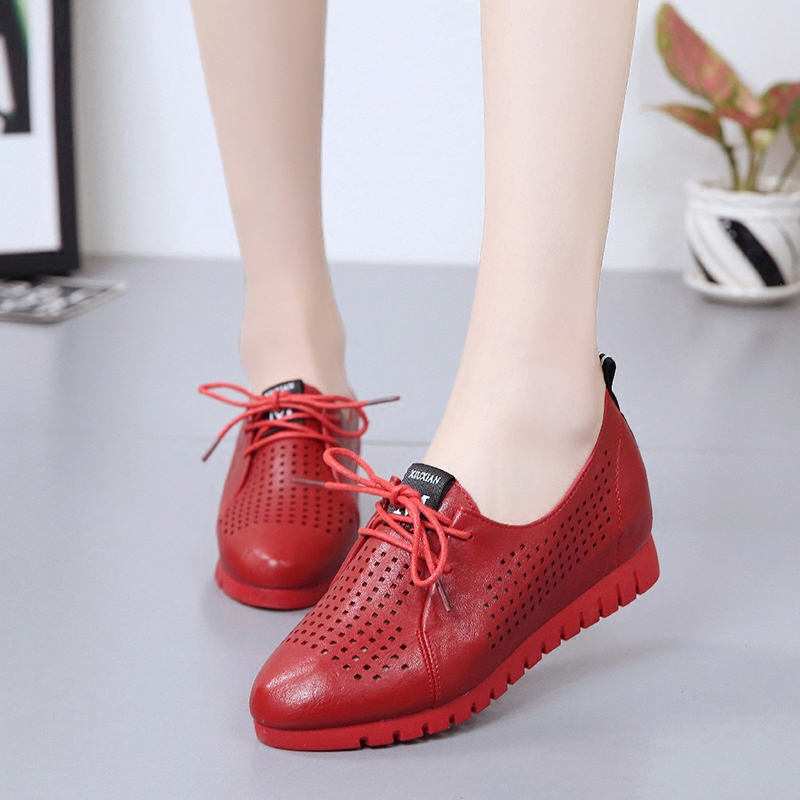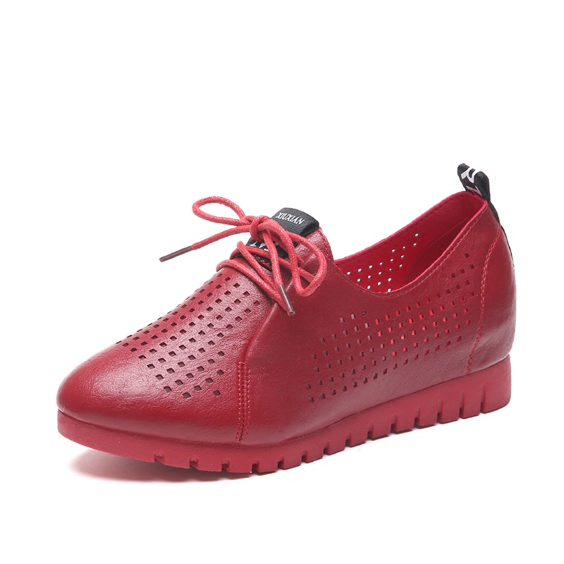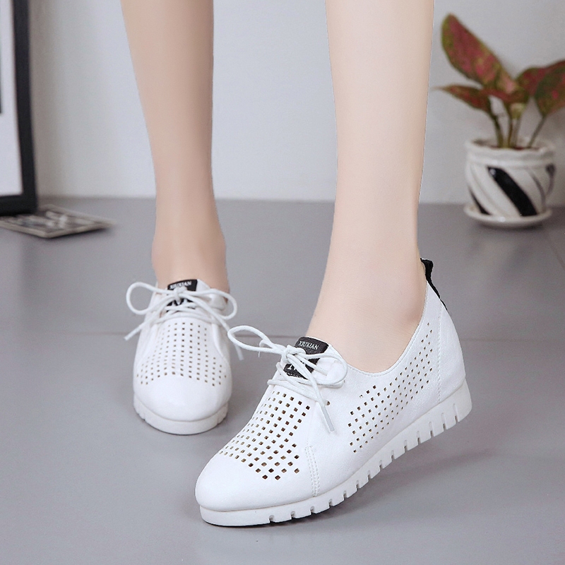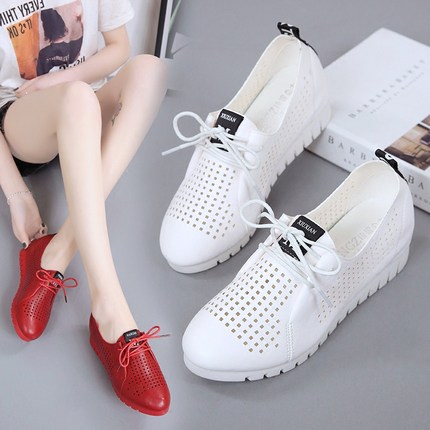 网鞋女夏季透气镂空单鞋女系带休闲内增高女鞋防滑软底工作开车鞋