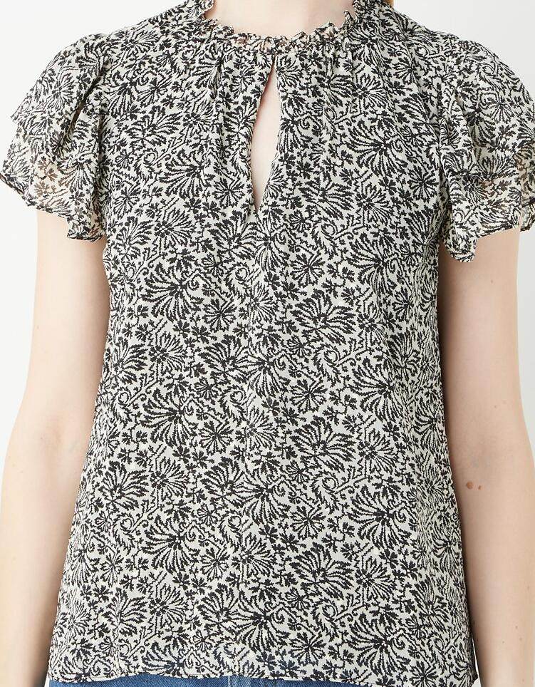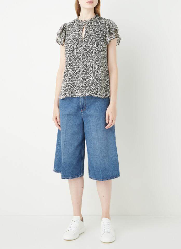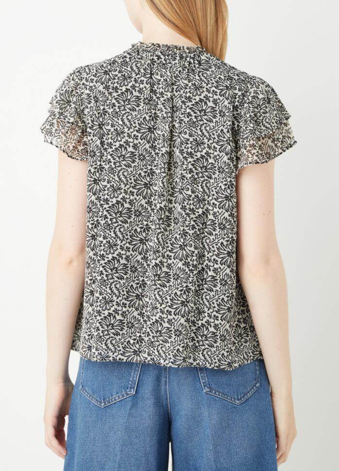 WHISTLES女短袖T恤上衣衬衫雪纺黑色碎花直筒气质英伦淑女百搭
