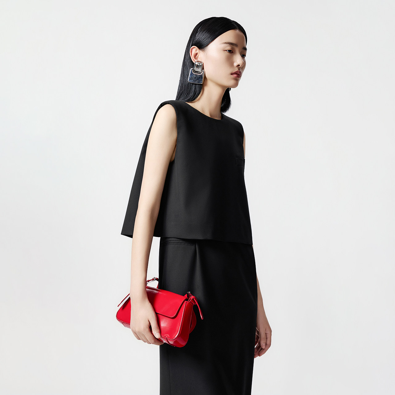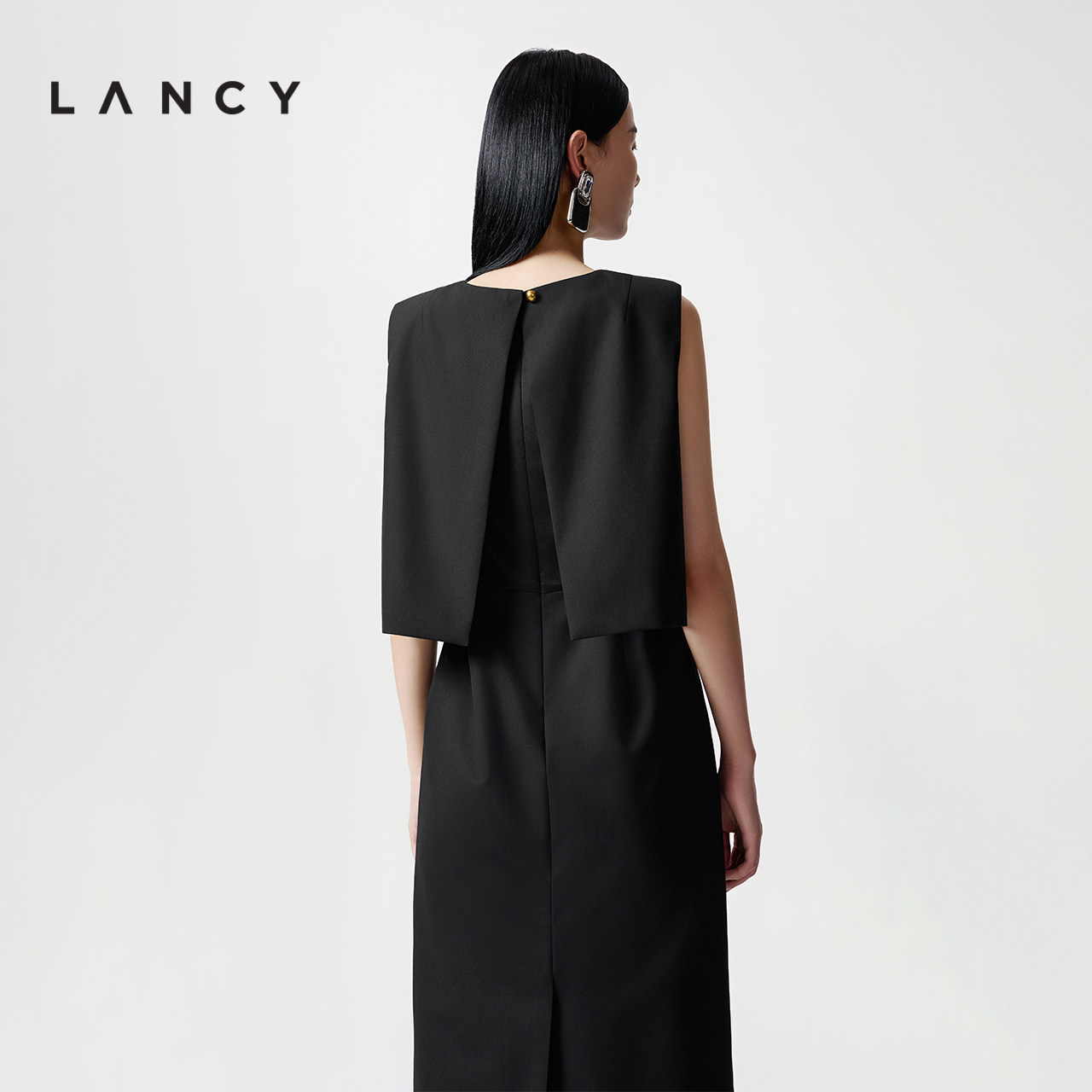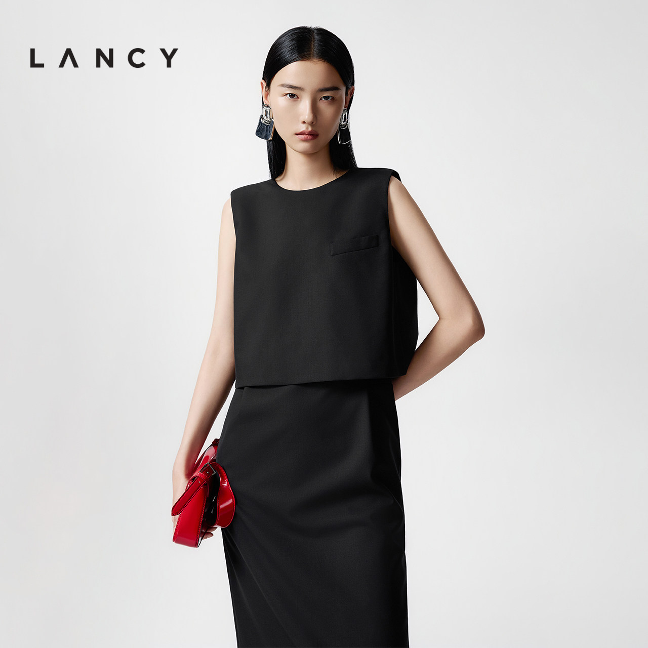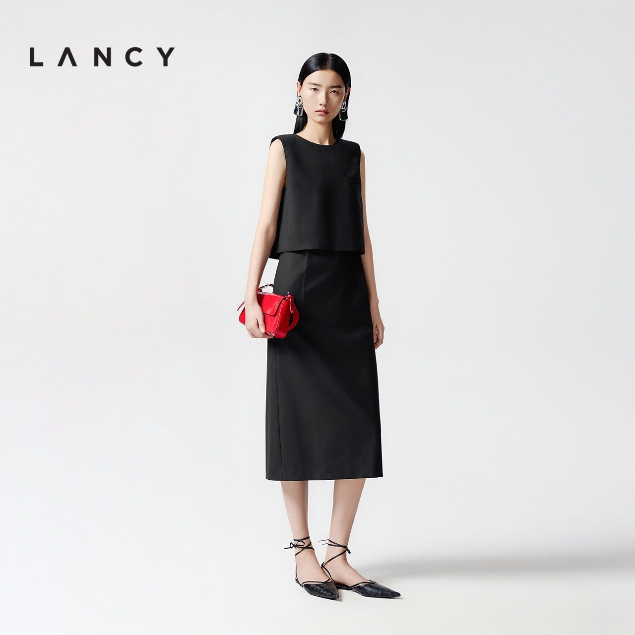 【桑蚕丝羊毛】LANCY/朗姿2025秋季新款气质假两件无袖通勤连衣裙