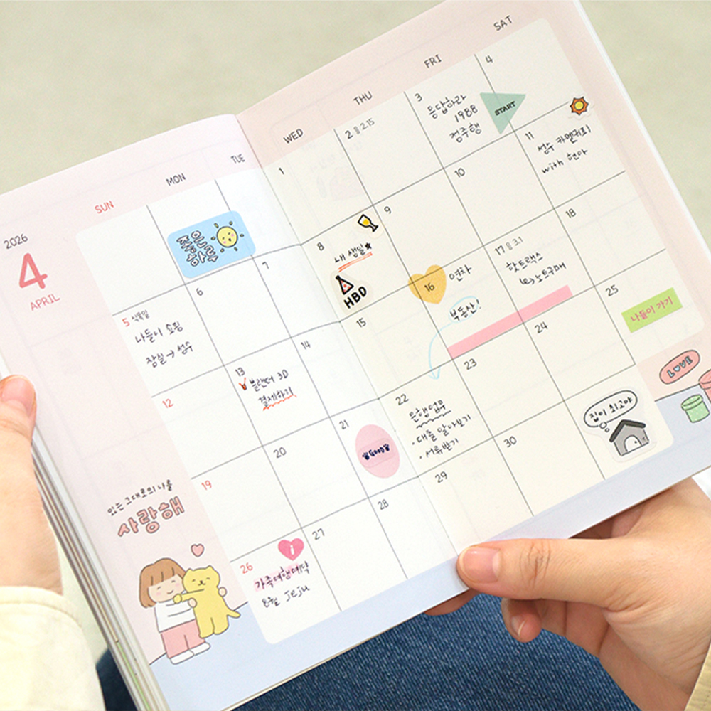 韩国indigo可爱插画彩页周计划本2026日程本PVC胶套手账周记本ins