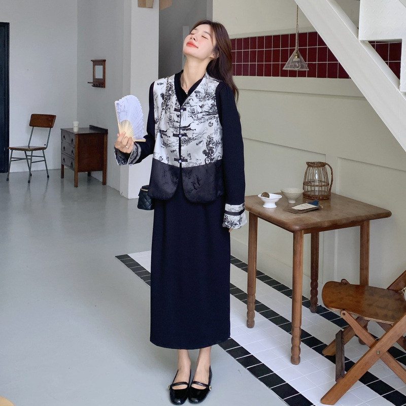 官网女装夏易菲实拍新中式国风马甲连衣裙套装2025秋新款时尚气质