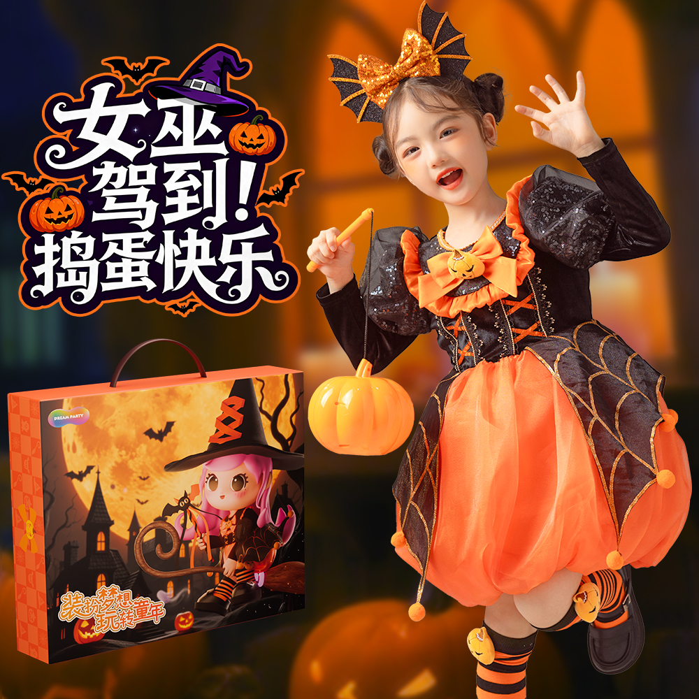 Dreampartybox万圣节儿童服装cos服女巫装扮万圣衣服女童连衣裙