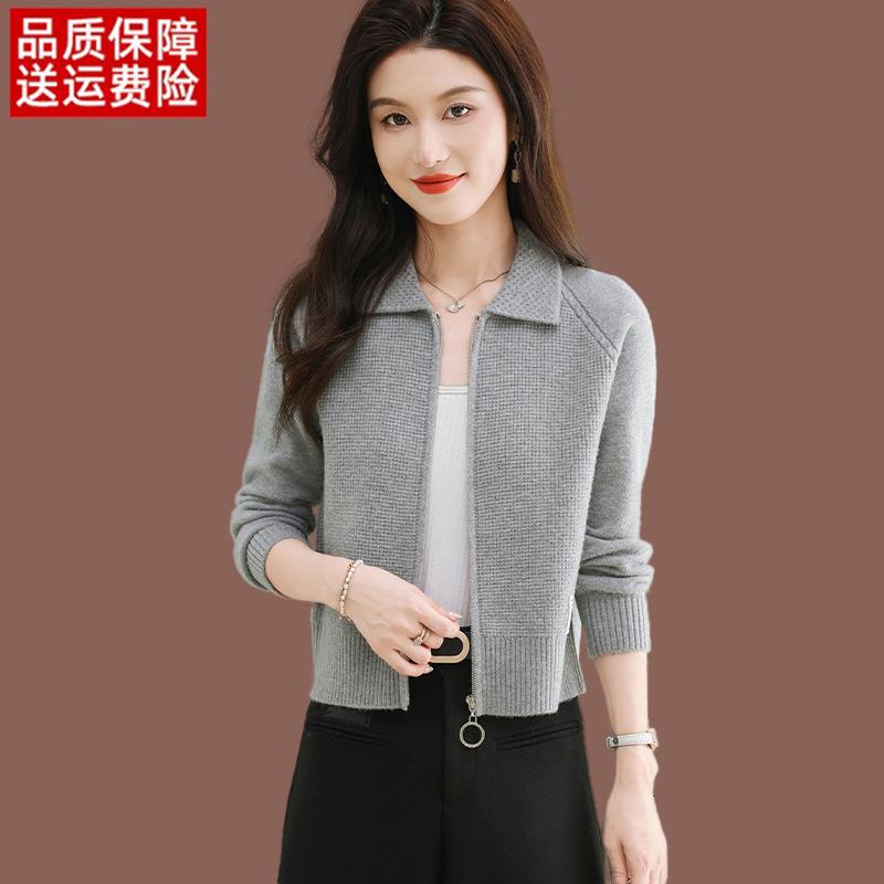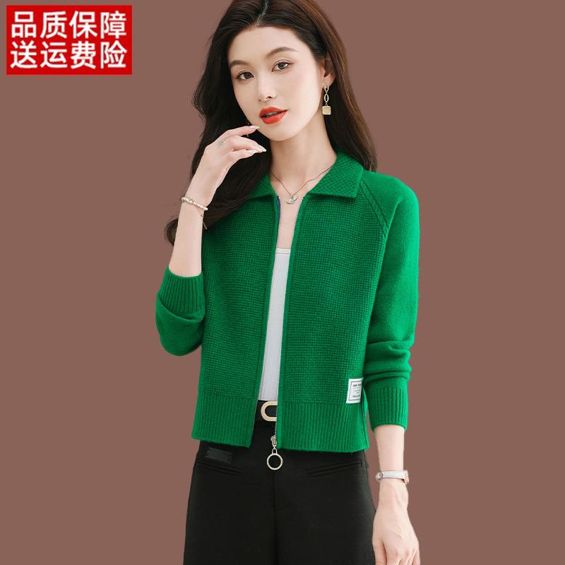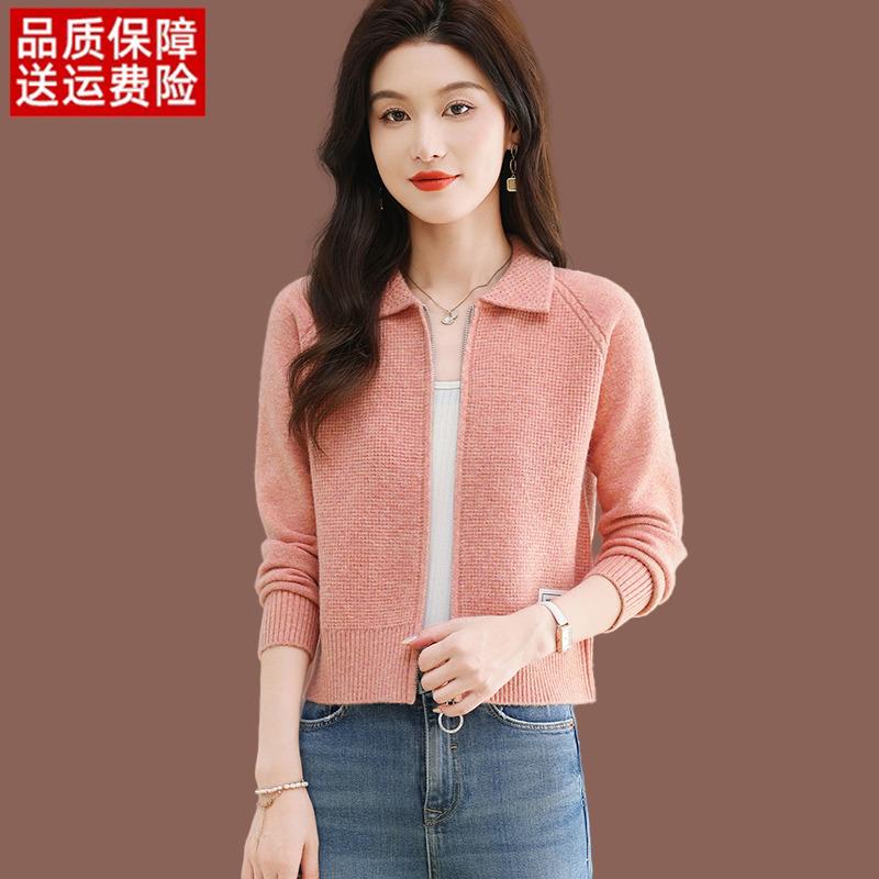 小香风红色毛衣外套女短款春装翻领上衣小款配裙外搭羊毛针织开衫