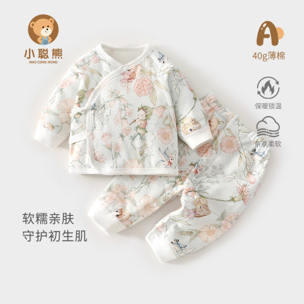 新生婴儿衣服秋季夹棉分体套装初生宝宝秋冬装保暖贴身两件套薄棉