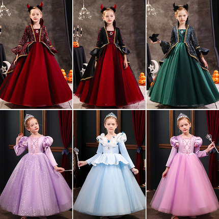 万圣节儿童服装装扮舞会cos巫婆连衣裙女巫公主裙女童吸血鬼衣服