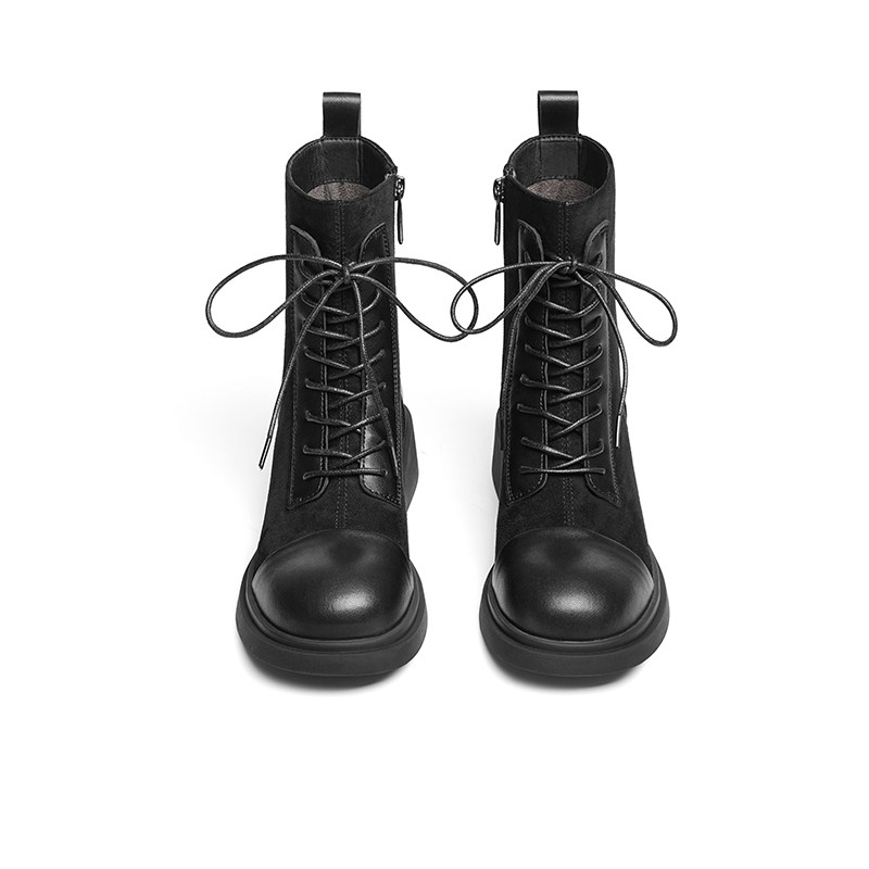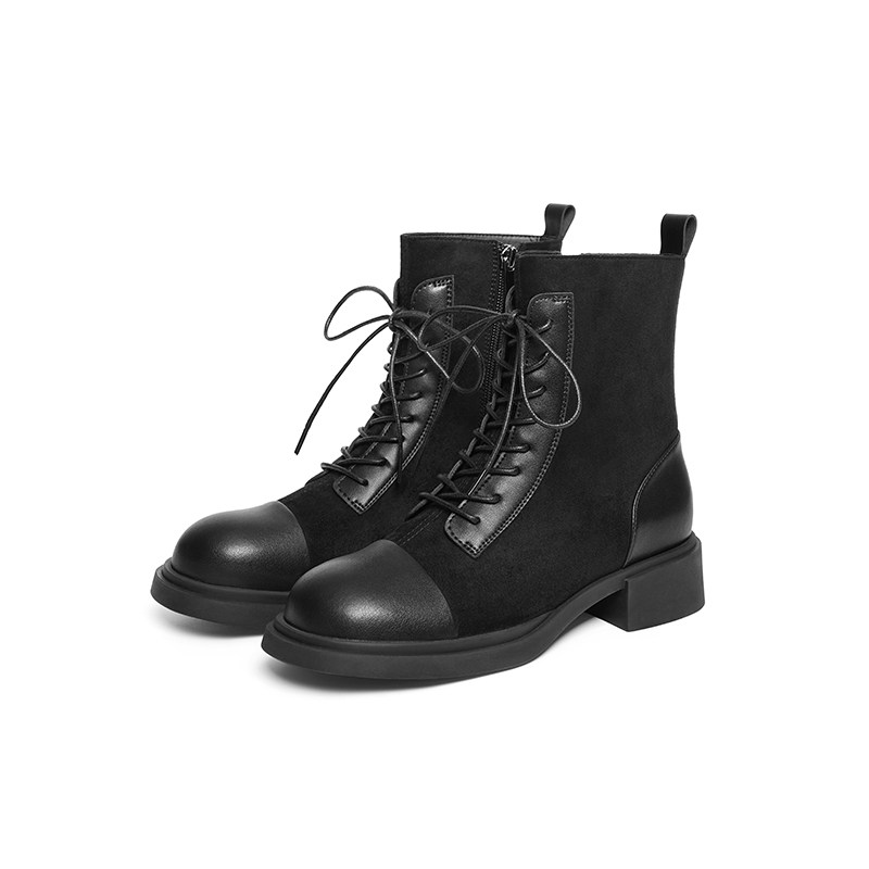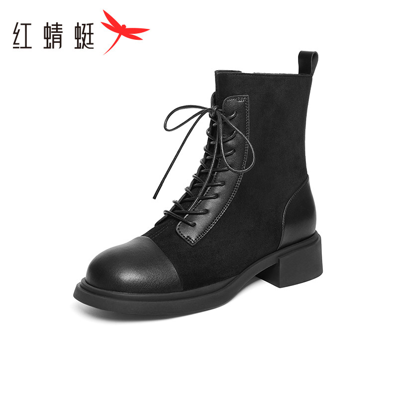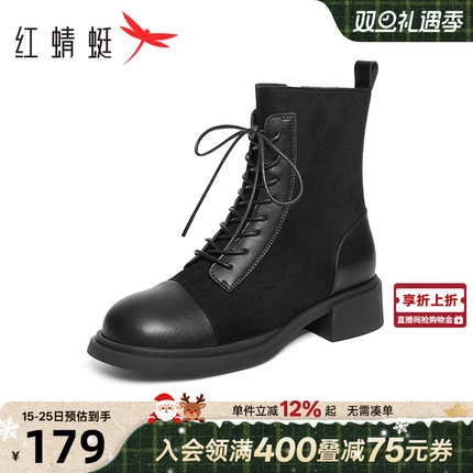 红蜻蜓马丁靴女冬季新款女靴英伦风短筒拼接短靴子复古弹力瘦瘦靴
