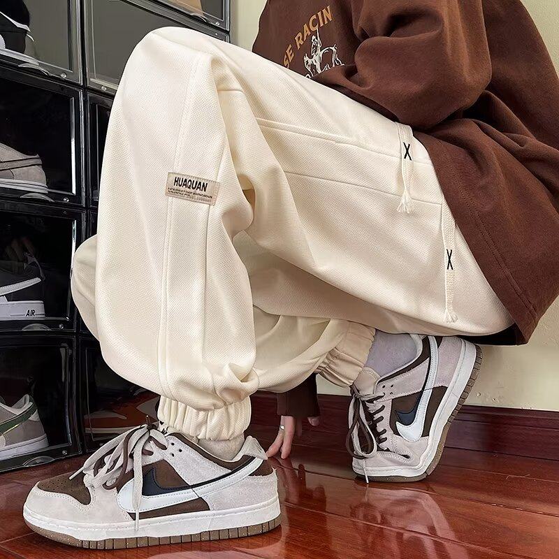 美式运动束脚裤子男款春秋季潮牌大码休闲长裤宽松华夫格阔腿卫裤