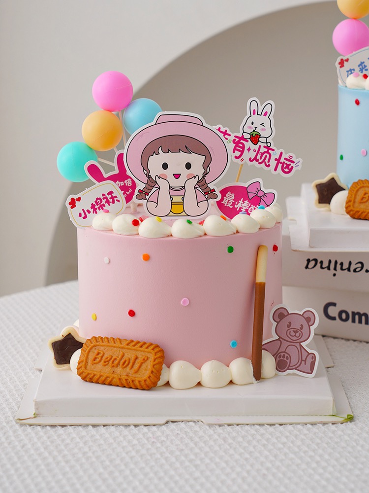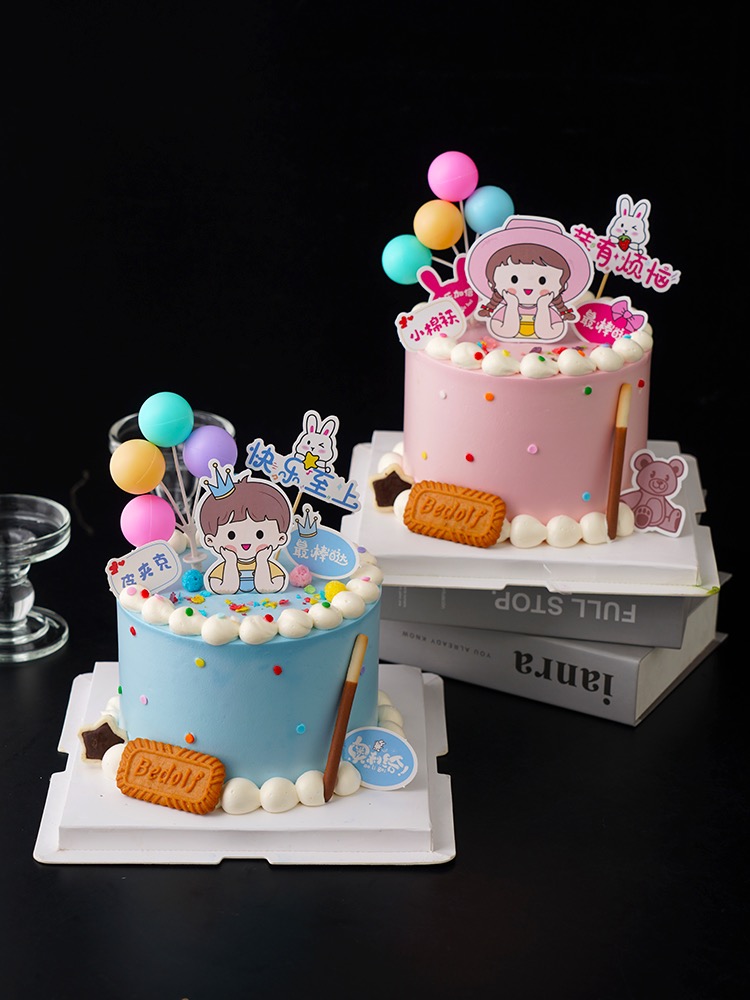 六一儿童节快乐蛋糕装饰卡通可爱男孩女孩快乐至上节日插件插牌