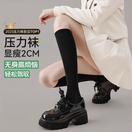 压力小腿袜子女春秋强压显瘦腿日系jk过膝袜黑色中筒袜韩版长筒袜