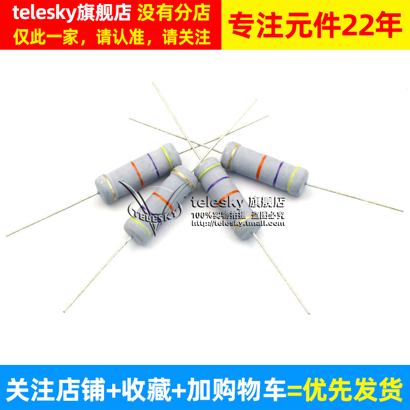 5W碳膜5%色环电阻器10R 100R 1K 2K 4.7K 5.1K 10K 100K 1R1M欧姆