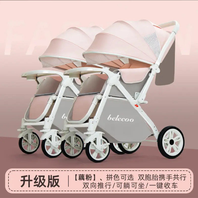 并联式双胞胎婴儿推车二胎神器可坐可躺可折叠双向高景观四轮推车