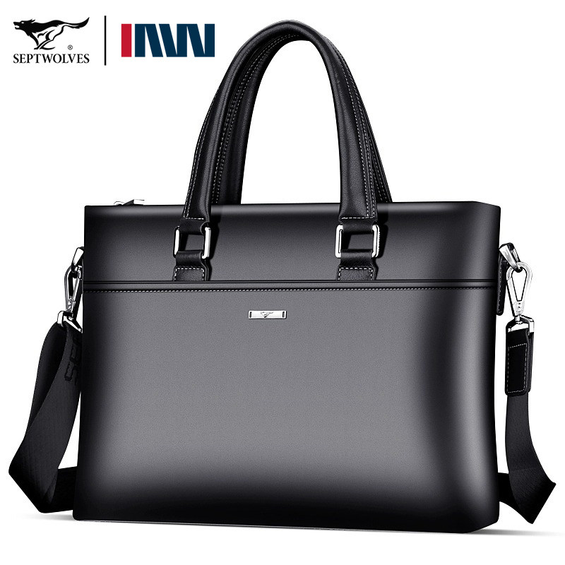 七匹狼真皮男包手提包纯商务公文包头层牛皮简约休闲青年男士横款