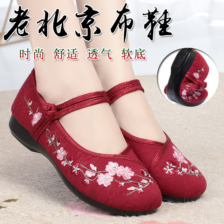 新款老北京布鞋女绣花鞋汉服鞋平底女布鞋防滑透气软底女鞋妈妈鞋