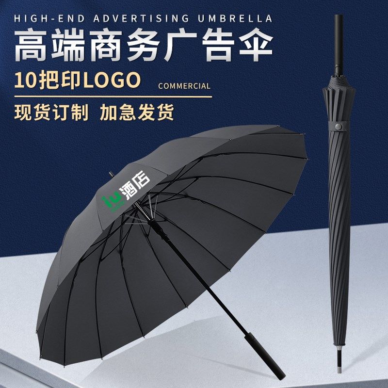 16骨雨伞定制logo可印字图案自动商务男士接待长柄广告伞定做