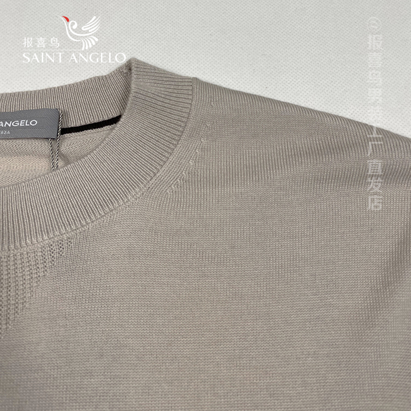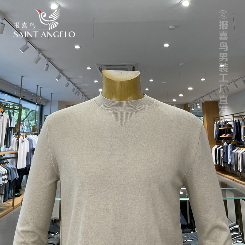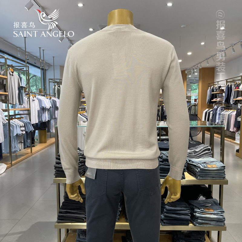 报喜鸟毛衣男100绵羊毛圆领针织衫男士羊毛衫米色打底男装上衣