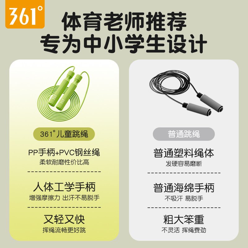 361度跳绳儿童小学生专用初中生中考标准款轴承钢丝专业竞速跳绳
