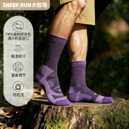 男女中筒中国美利奴羊毛运动袜