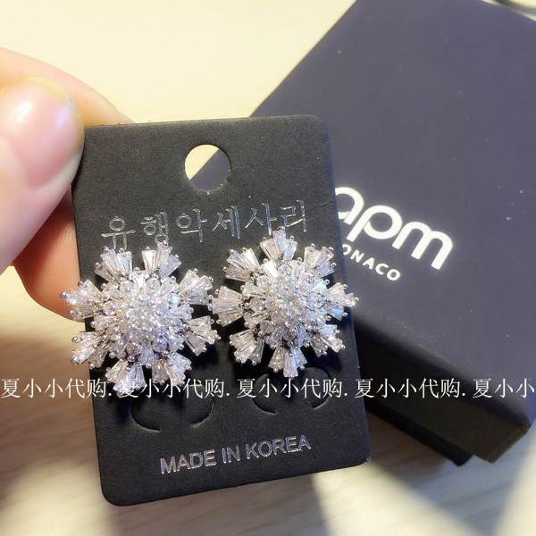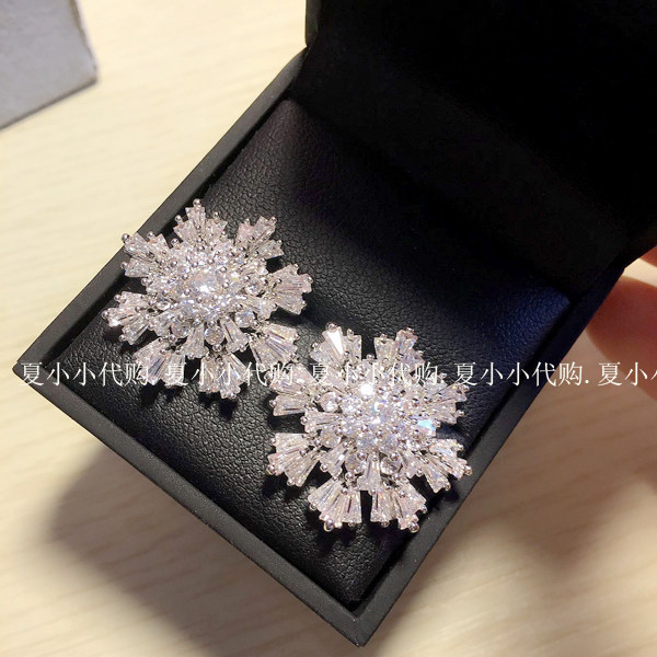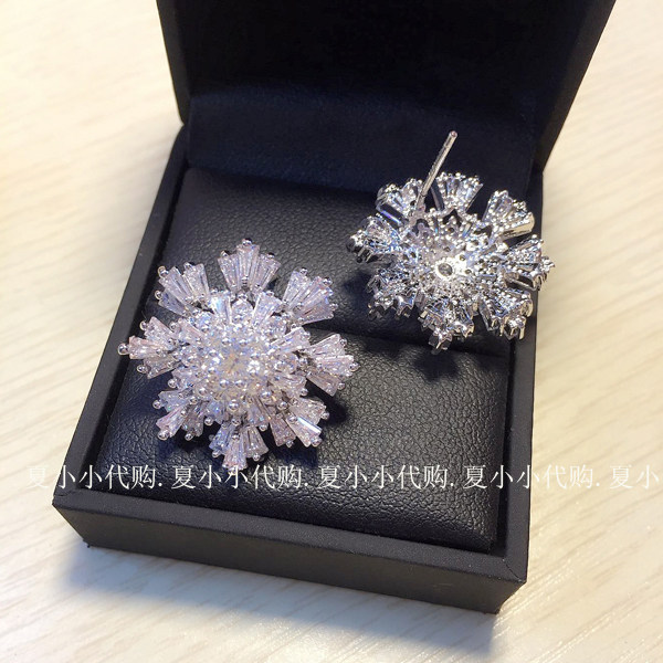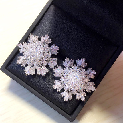 韩国珠宝款 925纯银雪花大耳钉 时尚气质晚宴礼服纯银耳环女