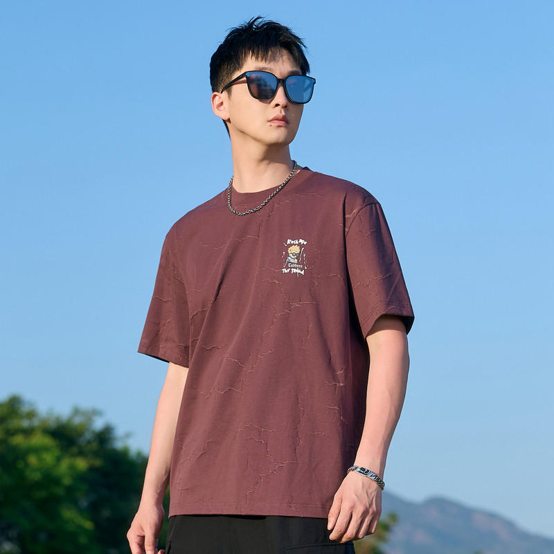 卡宾男装 特色瓷纹面料T恤2025夏季新款轻薄透气休闲舒适圆领上衣
