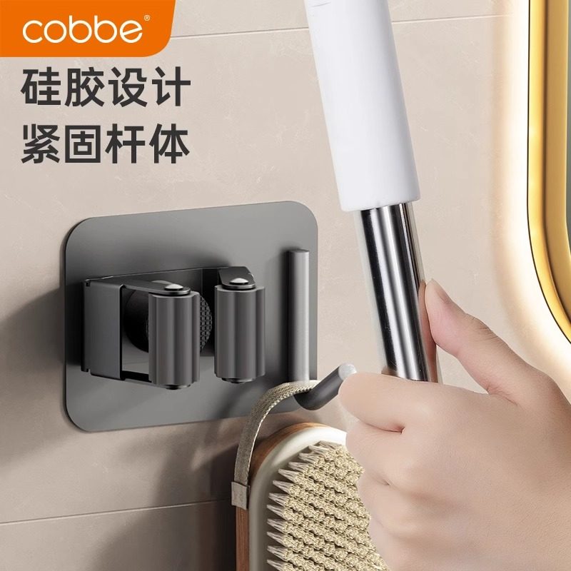 卡贝枪灰色拖把壁挂夹免打孔挂钩卫生间挂架浴室置物架拖布夹挂架
