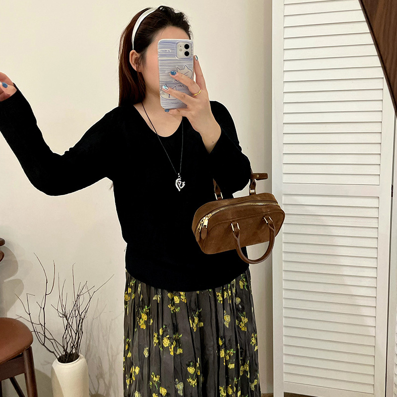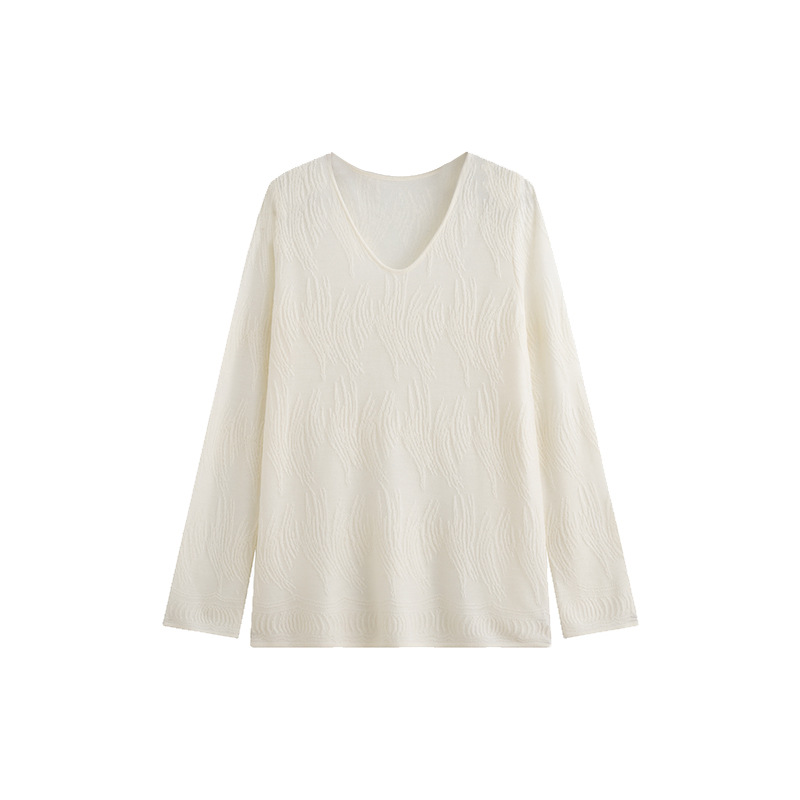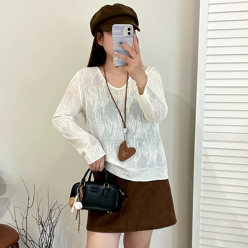 大码女装气质薄款u领上衣女蕾丝衫2025秋胖mm外穿内搭提花针织衫