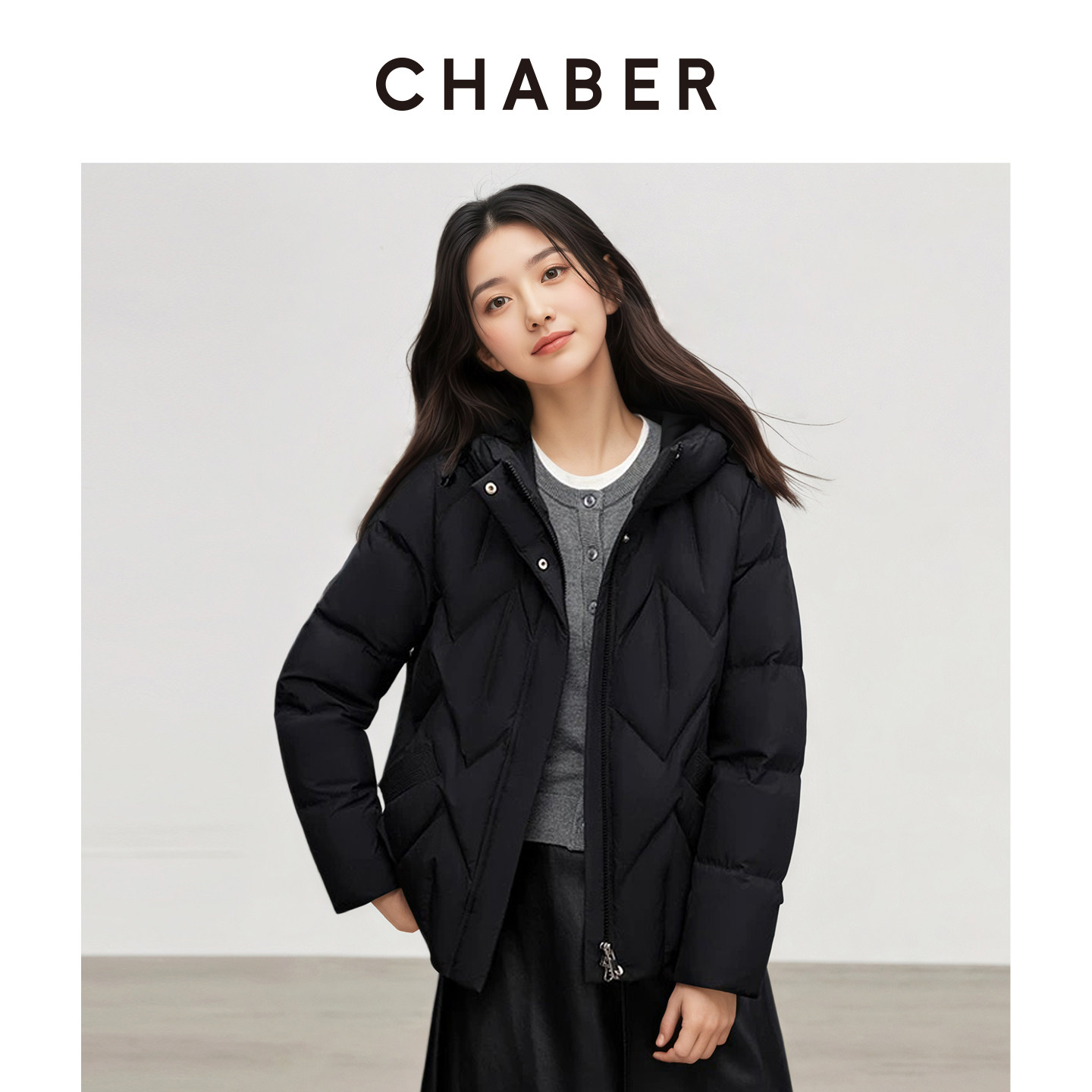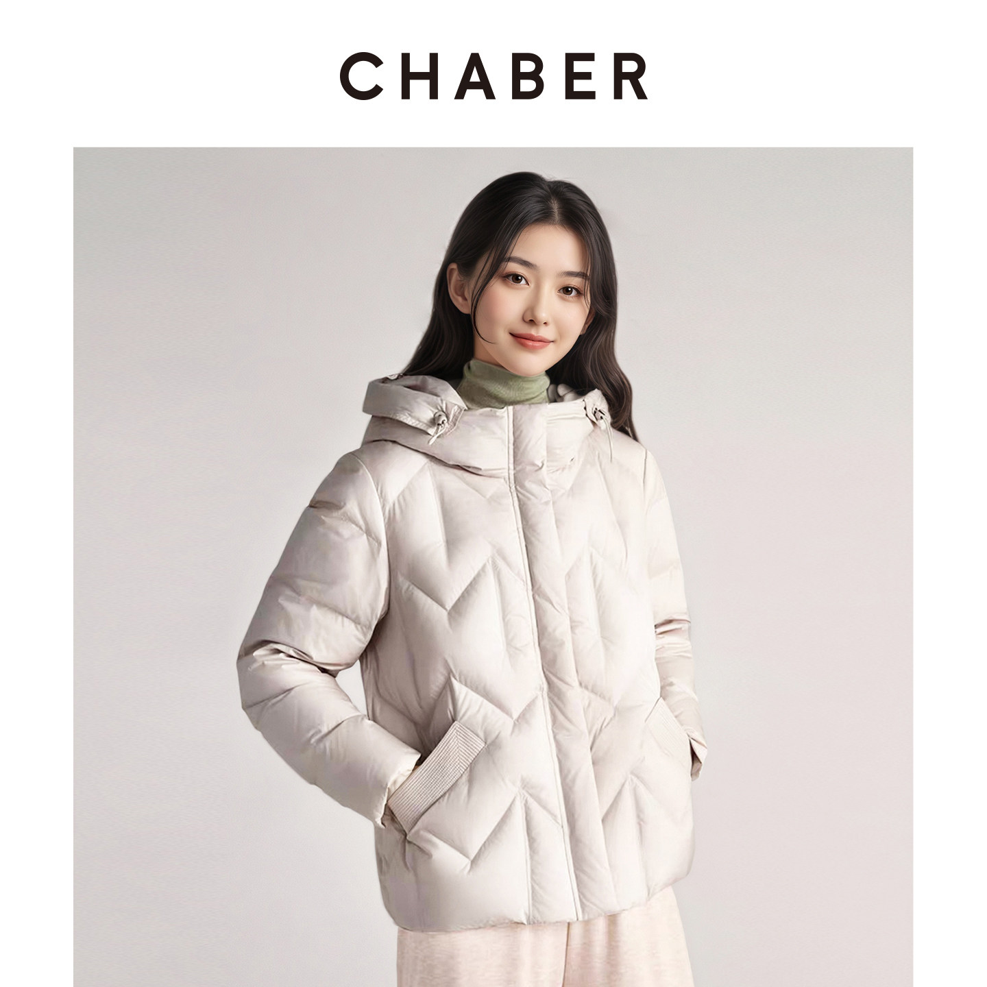 CHABER巧帛冬季新款短款时尚纯色羽绒服宽松显瘦连帽女保暖外套