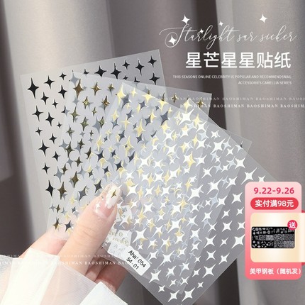 美甲贴纸网红爆款2025新款星芒装饰小图案星星指甲背胶3d美甲贴纸