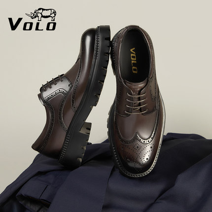侯明昊同款VOLO犀牛男士皮鞋男正装商务2025新款布洛克真皮大头鞋