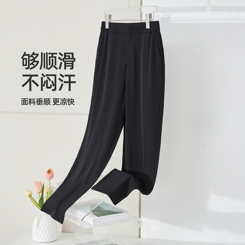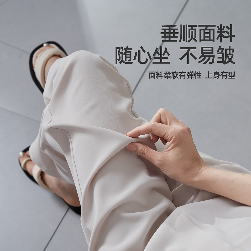 逸阳九分冰丝白色小直筒西装裤女25夏薄款高腰垂感休闲烟管裤