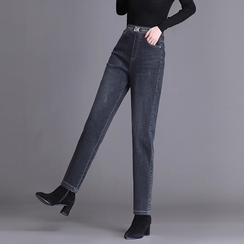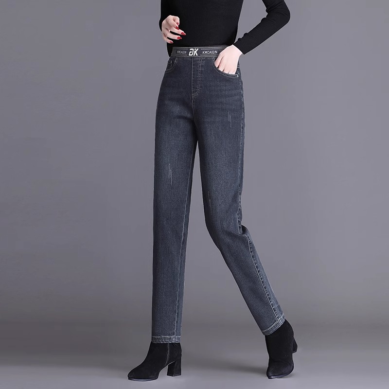 秋季牛仔裤女松紧高腰长裤2025新款休闲哈伦裤大码女装小脚裤春秋