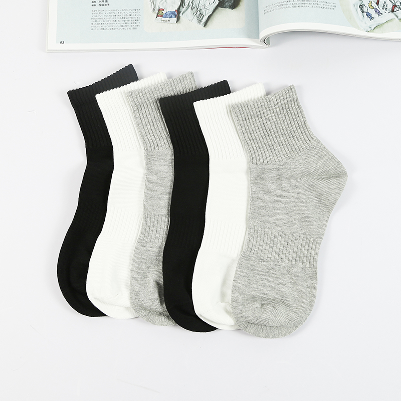 施雅秋冬纯棉竖纹中短筒男袜休闲舒适吸汗透气防臭袜子纯色自然