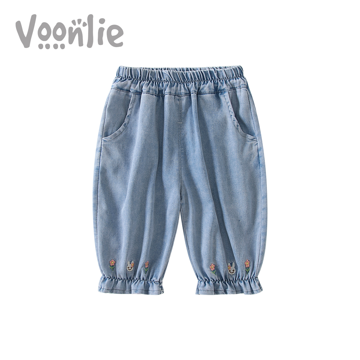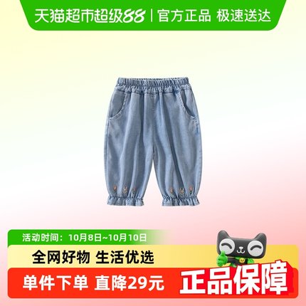 女童裤子夏装宝宝牛仔裤外穿休闲裤小童灯笼裤儿童天丝七分裤夏季