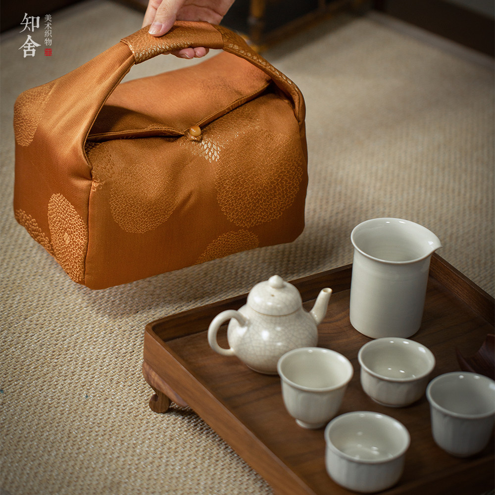 长安菊旅行袋茶壶杯收纳袋手工织锦中式复古宫廷盖碗布袋知舍原创