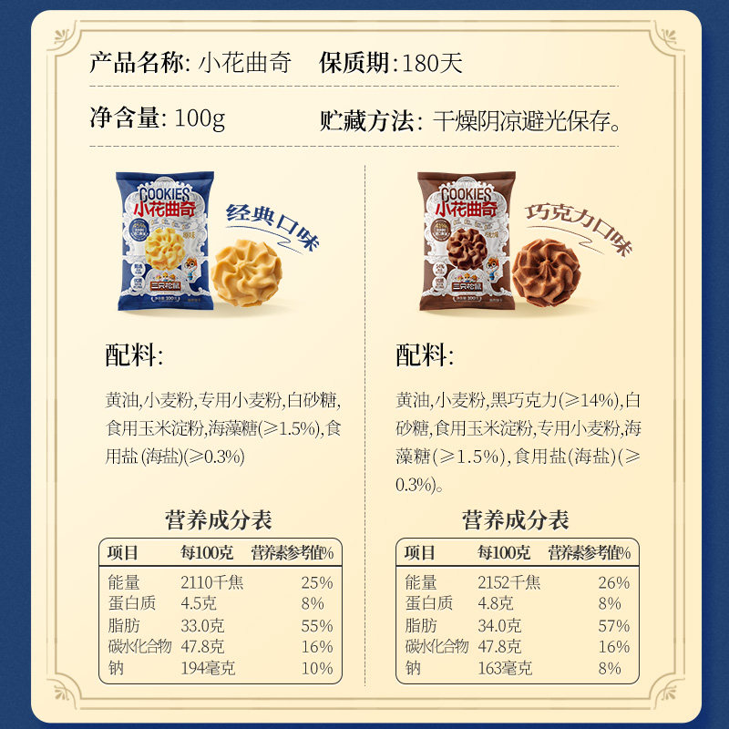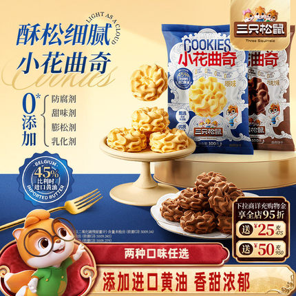 三只松鼠小花曲奇100g黄油饼干办公室小吃休闲下午茶健康糕点零食