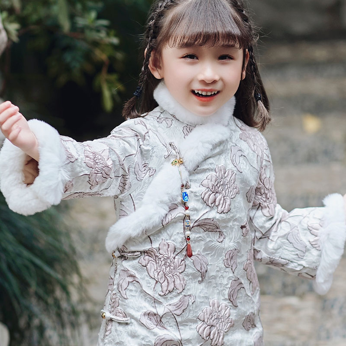 中国风女童冬款夹棉小女孩新年服真兔毛棉袄儿童旗袍女冬季
