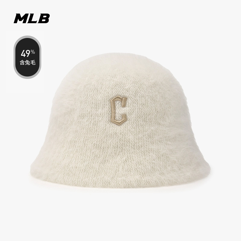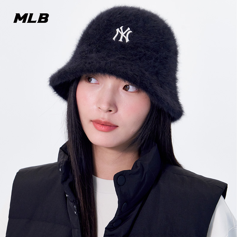 MLB官方男女情侣刺绣logo圆顶针织兔毛混纺渔夫帽24冬季HTB08