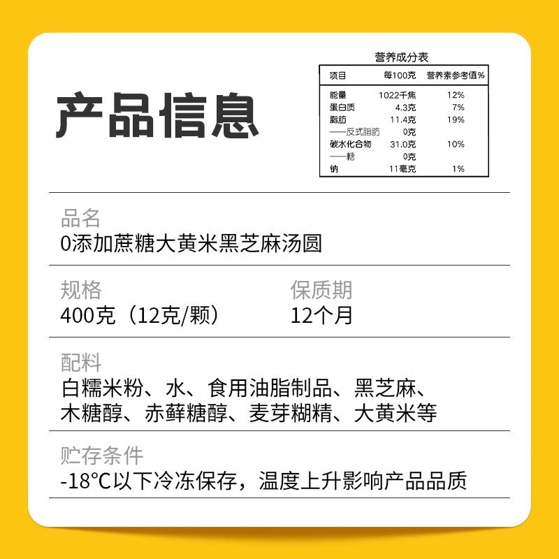 【顺丰包邮】思念大黄米0添加蔗糖黑芝麻汤圆400g无糖低糖元宵