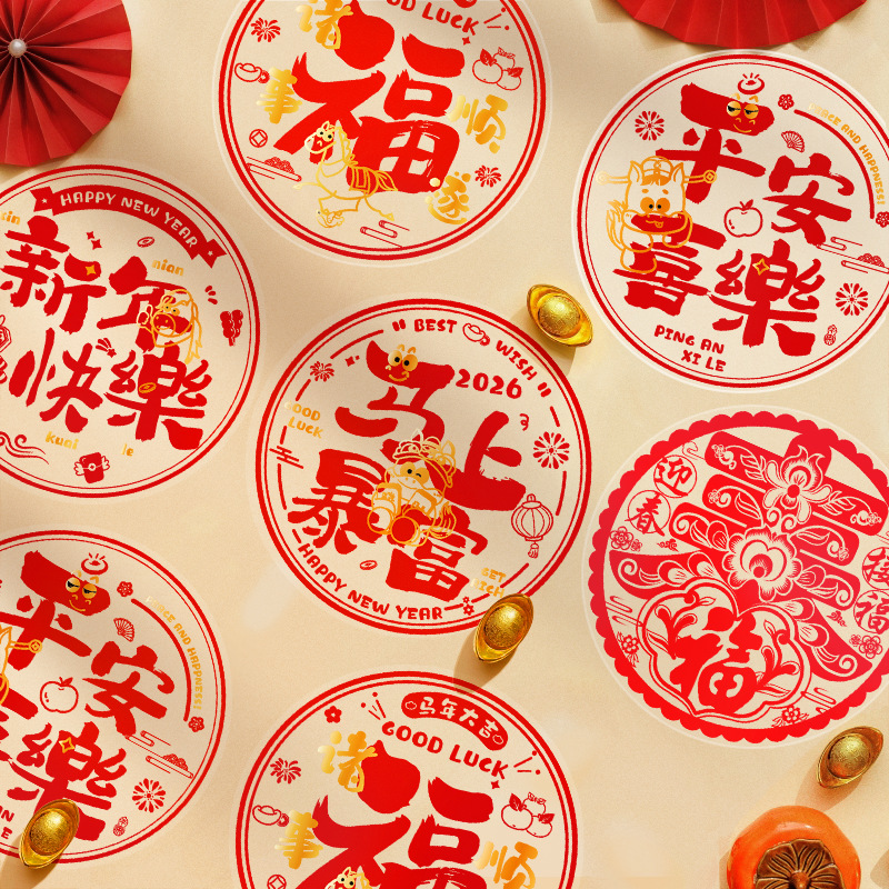 2026新款马年新年窗花静电贴福字玻璃门贴春节过年贴纸仪式装饰品