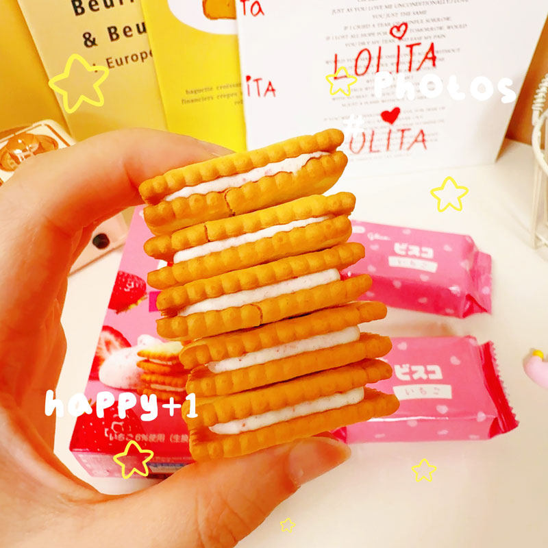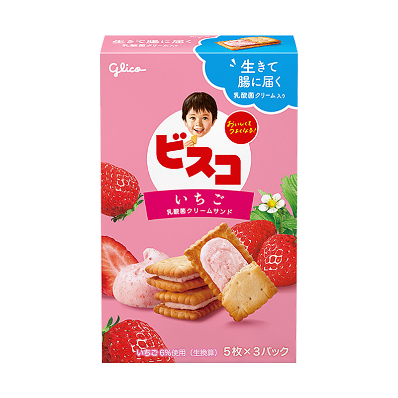 日本进口glico格力高可尔必思乳酸菌小饼干烤巧克力草莓夹心饼干