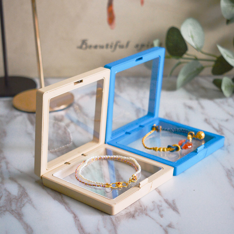 彩色展示盒pe膜收纳盒悬浮盒饰品透明首饰盒文玩珠宝手链包装盒子
