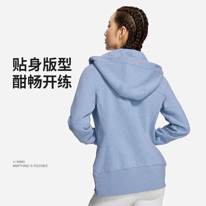 李宁卫衣女冬季跑训系列时尚舒适加绒贴身型开衫连帽卫衣AWDSA94-