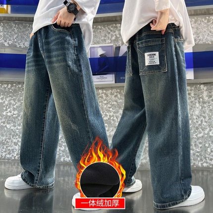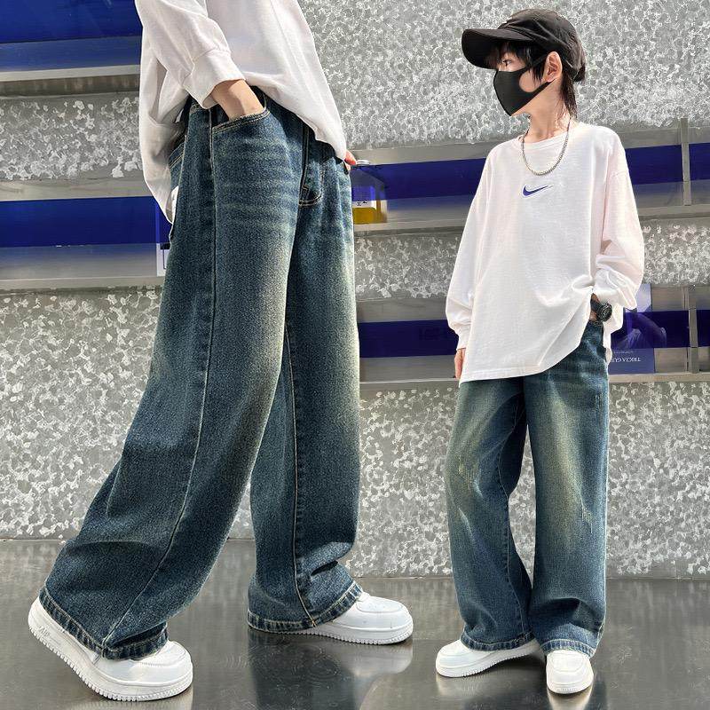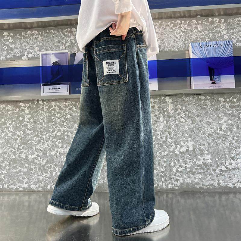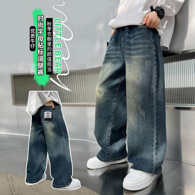 男童美式街头水洗做旧牛仔裤中大童春秋直筒宽松阔腿长裤vibe新款