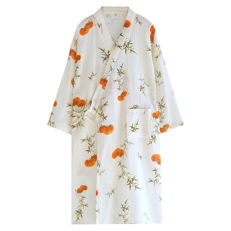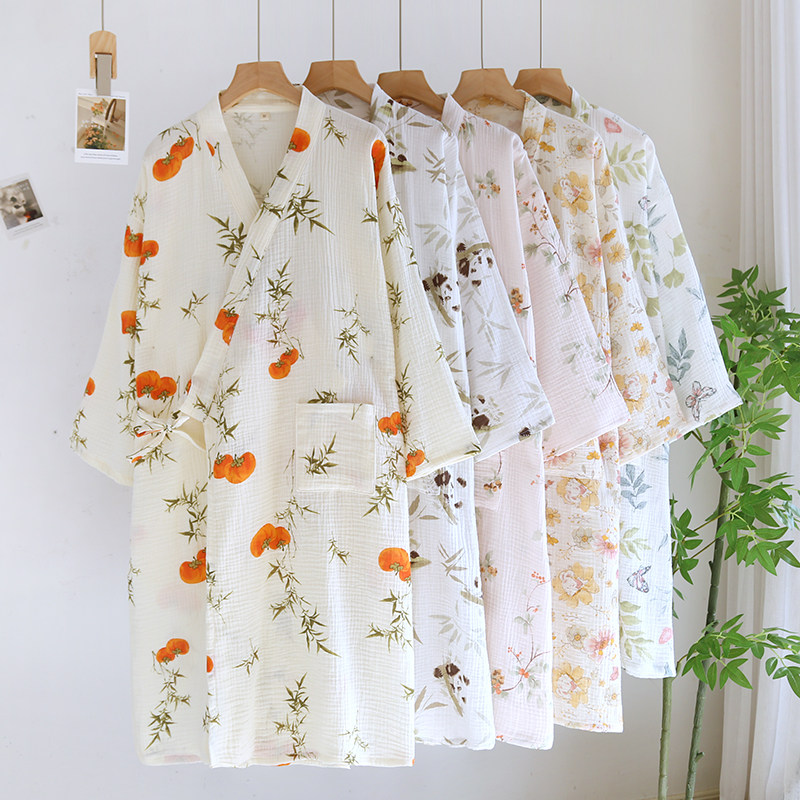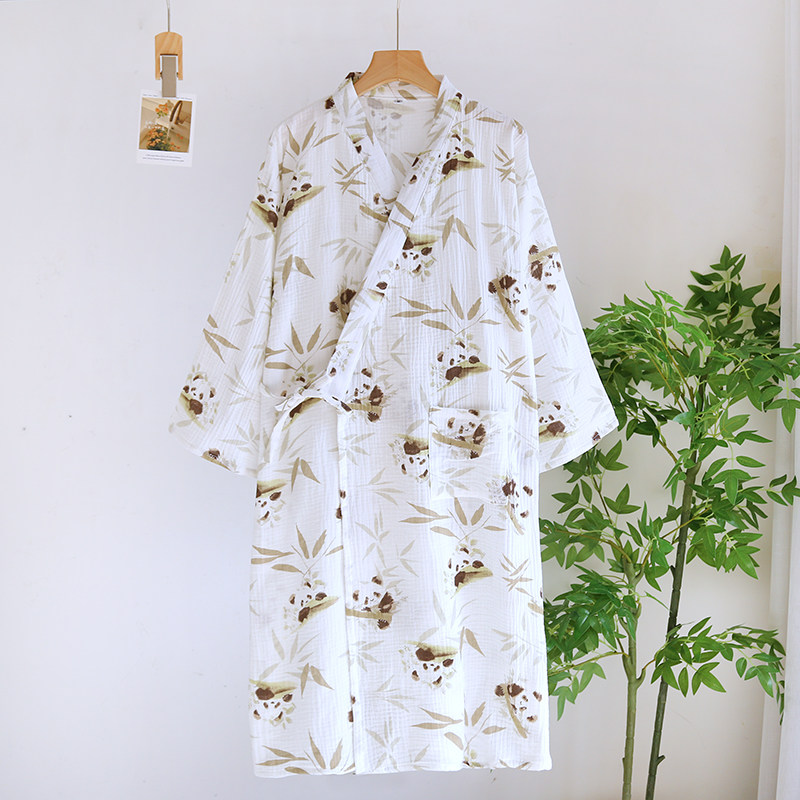 纯棉纱布和服家居睡袍宽松斜襟