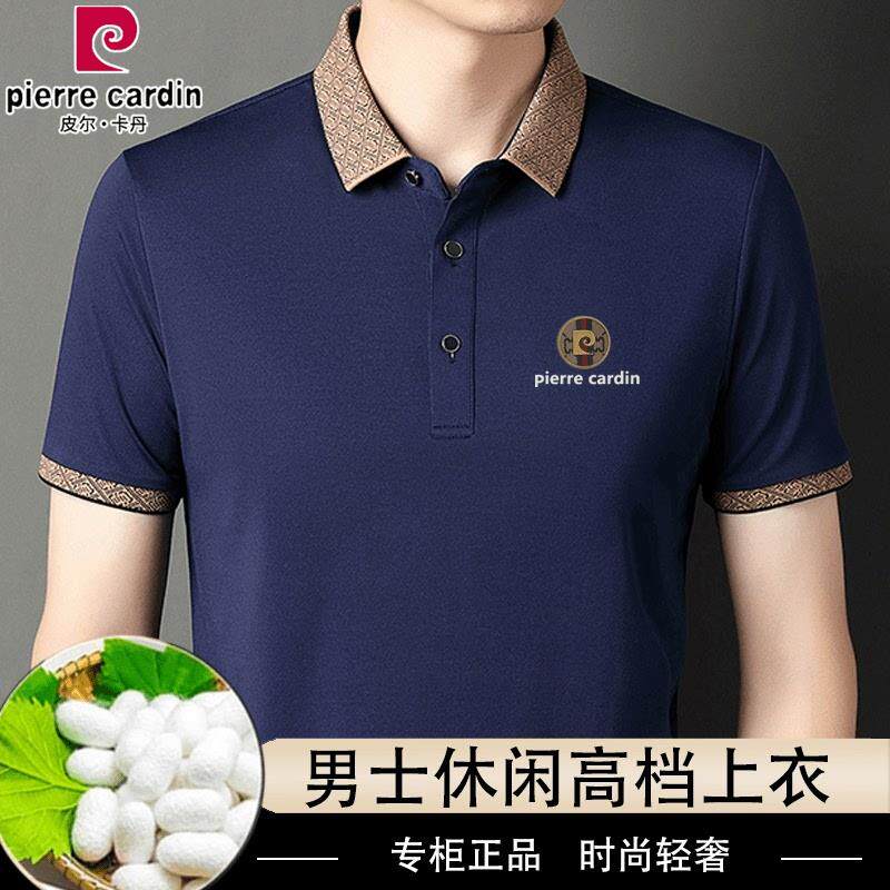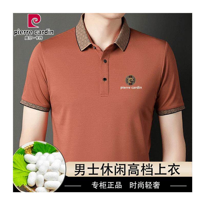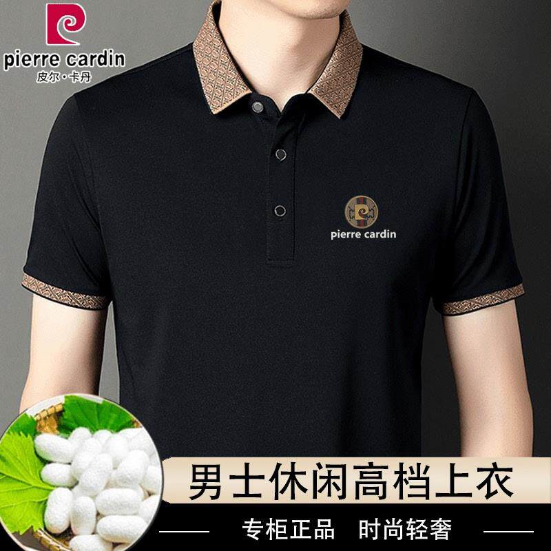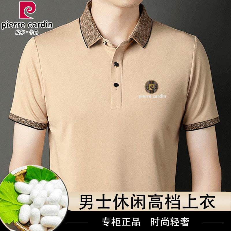 皮尔卡丹高档桑蚕丝男士短袖T恤夏季新款休闲冰丝免烫翻领polo衫
