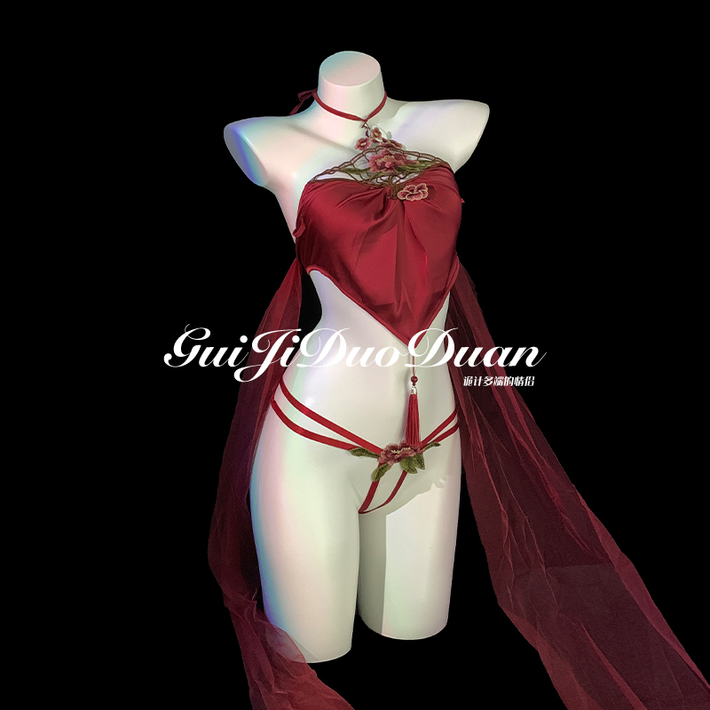 诡计多端的情侣「牡丹仙子」性感古风刺绣挂脖肚兜系带qqny内衣女