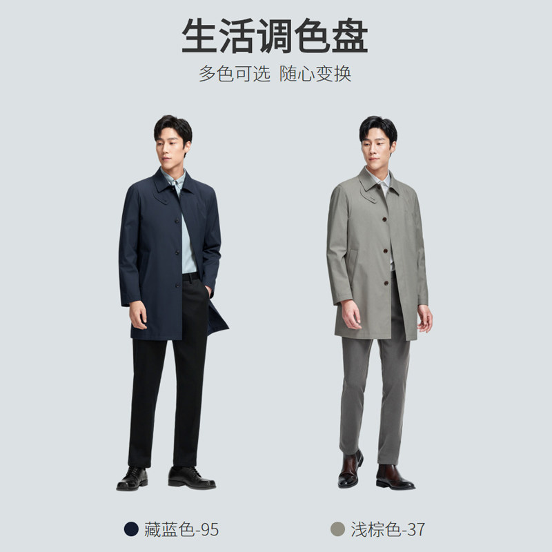 【三防】金利来秋冬新款男士夹克中长翻领商务休闲风衣外套男